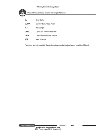 Contoh Manual Prosedur Kerja Sekolah Menengah Barisan Pengurusan dan Pendidik SMK Taman Indah 2014. Interested in flipbooks about Manual Prosedur Kerja Final 2022.